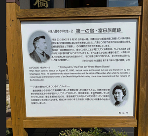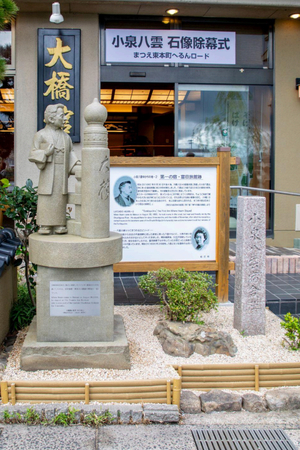 ラフカディオハーン・小泉八雲とセツさんの初めて泊まった宿 (旧富田旅館)現在の大橋館にて石像第一号の記念式典がありました。